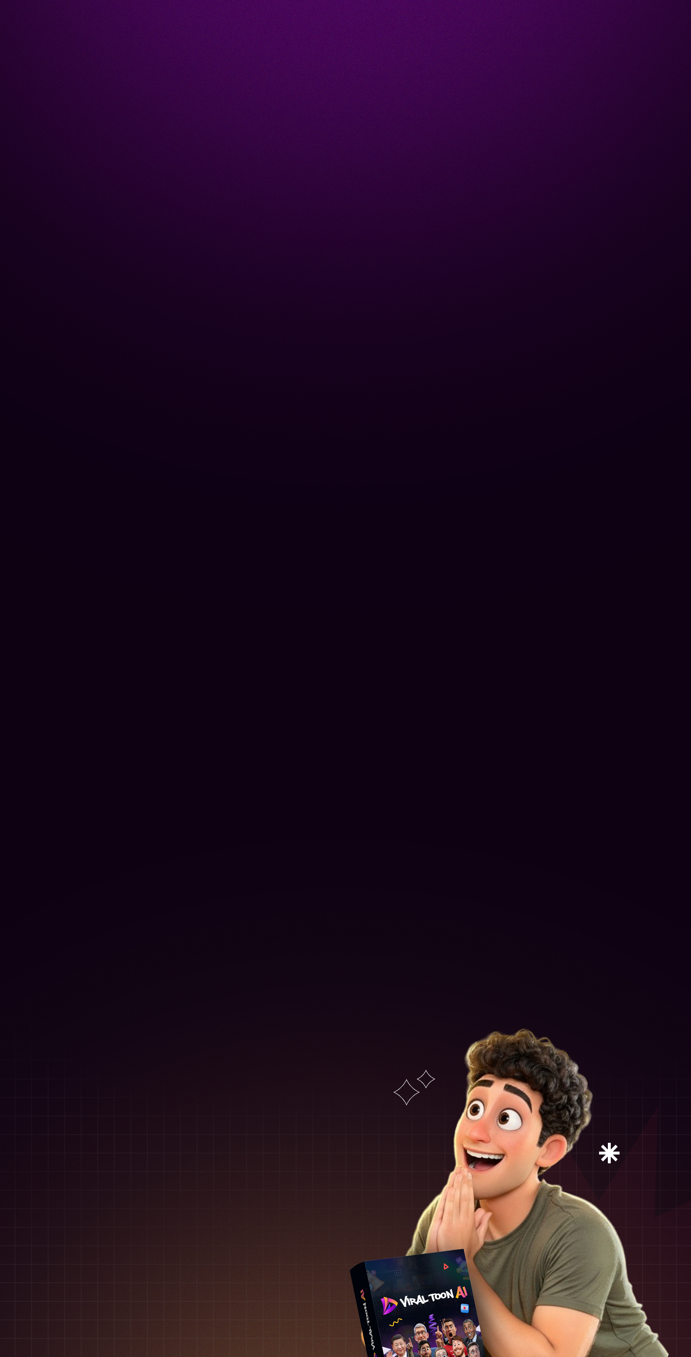 By using this website, purchasing our products, or implementing our trainings, you agree that you are solely responsible for your actions and outcomes. You assume all risks associated with applying any advice or strategies, and you agree that Viral Toon AI, its affiliates, subsidiaries, officers, employees, contractors, and agents cannot be held liable for any success or failure, direct or indirect loss, or damages arising from your use of our content. Conduct your own due diligence before implementing any strategy.